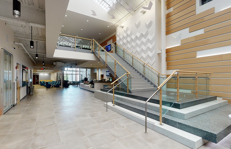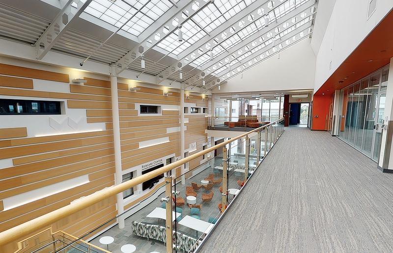 Embodying our University-wide commitment to preparing the next generation of leaders and problem solvers to excel in the careers of the future, it features the most technologically advanced collaborative classrooms, engineering and science labs, video production studios, a makerspace, and an esports training and competition space. The facility and the area around the building were designed to foster an innovative spirit throughout our community that encourages students – from across all majors – to visit the Bergami Center to collaborate, conceive, and create.