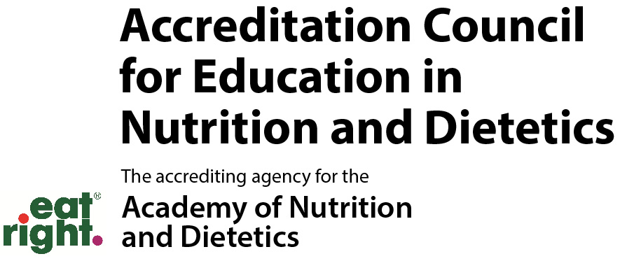 Our Didactic Program (DPD) in Nutrition and Dietetics provides a science-based, healthcare-oriented approach to food and nutrition accredited by the Accreditation Council for Education in Nutrition and Dietetics of the Academy of Nutrition and Dietetics. The accredited program provides Verification Statements to successful graduates to go on to dietetic internship programs or become registered dietetic technicians.