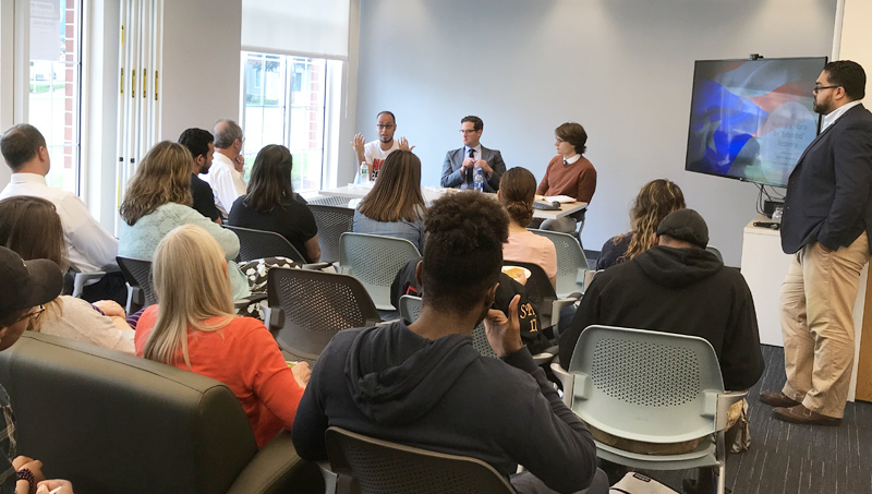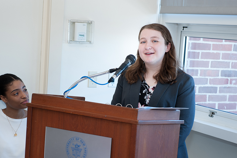 Brandon Miller '18. who is now pursuing a Ph.D. in Chemistry at Northeastern, earned first place in the poster competition, while Alexandra Goriounova '20, who is double majoring in forensic science and chemistry, earned second place.