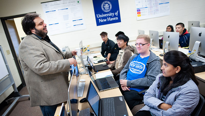 Close to 100 percent of the graduates of the University’s cybersecurity and networks program earn jobs in the field or pursue advanced degrees, and alumni work in the banking, finance, and insurance industries, in law enforcement, for the big four accounting firms, at the MITRE Corporation, Lockheed Martin, Accenture, Capital One, Webster Bank, the FBI, and the U.S. Army Cyber Command.
