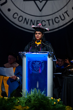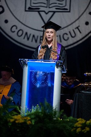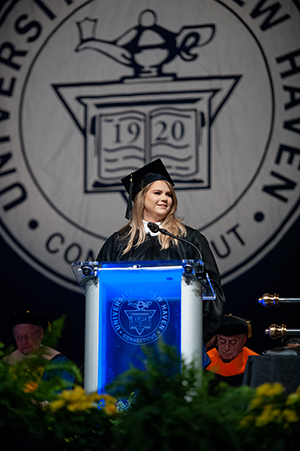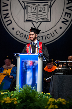 Five students were selected to share remarks on behalf of their fellow students during the University of New Haven’s spring Commencement ceremonies. Below is the full text of the messages they shared.