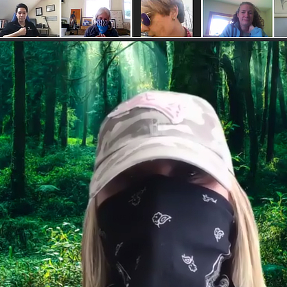 Faculty and staff members showed off their bandanas in a recent “Tuesday Touch Base” session.