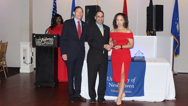 Danielle Desjardins (right) at the University’s Salute to Service Banquet at which she was presented with the outstanding dedication to our military community award.