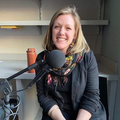 Savannah Dominguez '17 (left) and Prof. Jamie Slenker shared their stories as part of an interview captured by StoryCorps.