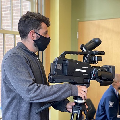 Tyler Garnet ’22 filming the FOX61 Teacher’s Workshop.