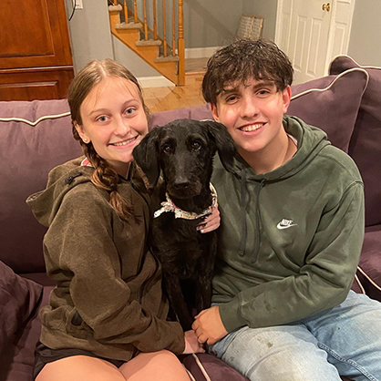 Gabrielle Duke and her son Asher Duke ’24 welcomed Emily Verge '24 into their home in Patterson, NY, where they safely rode out the storm, spending time with the Dukes’ puppy, Sugaree.