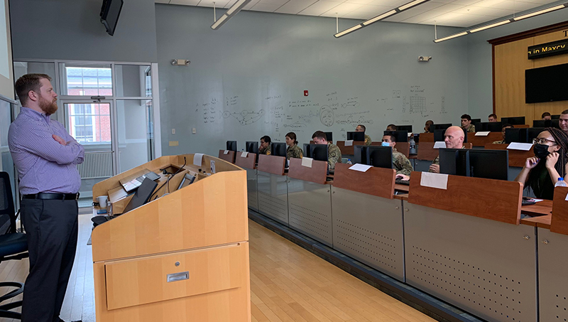 After the training, the University evaluates the success of the program with tools such as surveys and an after-action review (AAR) to explore individual perspectives, to ensure the highest quality training, and to continue to improve the program. Major Ryan Miller, team chief of the Defensive Cyber Operations Element at the Connecticut National Guard, conducts the AAR.