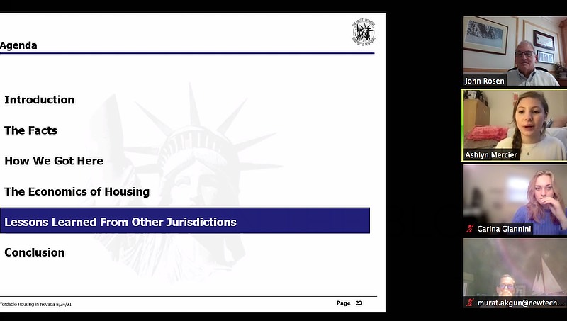 Mercier and her teammates recently presented their findings virtually to the Nevada Policy Research Institute, a think tank, via Zoom. The group members presented their research, discussing the economics of housing and offering recommendations for increasing affordable housing.