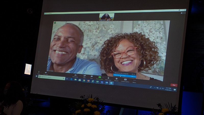 Kevin Myatt '16 Hon., a member of the University’s Board of Governors, and his wife Gail, joined the celebration virtually from their home in Arizona. The center bears their family’s name, and the Myatts have supported its mission since day one.