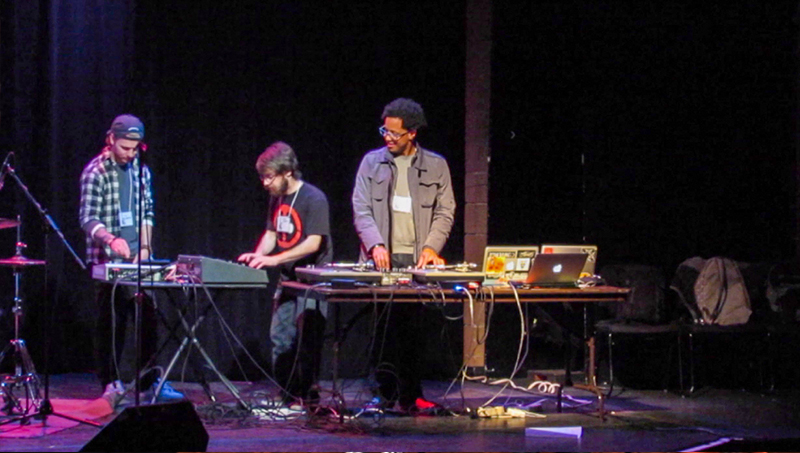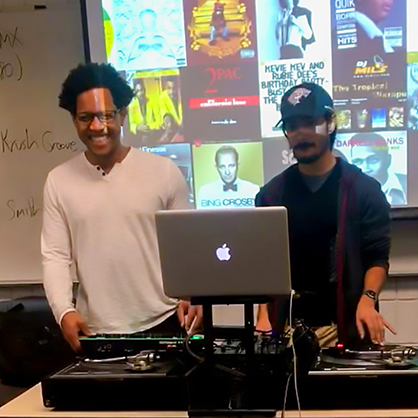 Patrick Rivers, Ph.D., (left) at a hip-hop technology and production session.