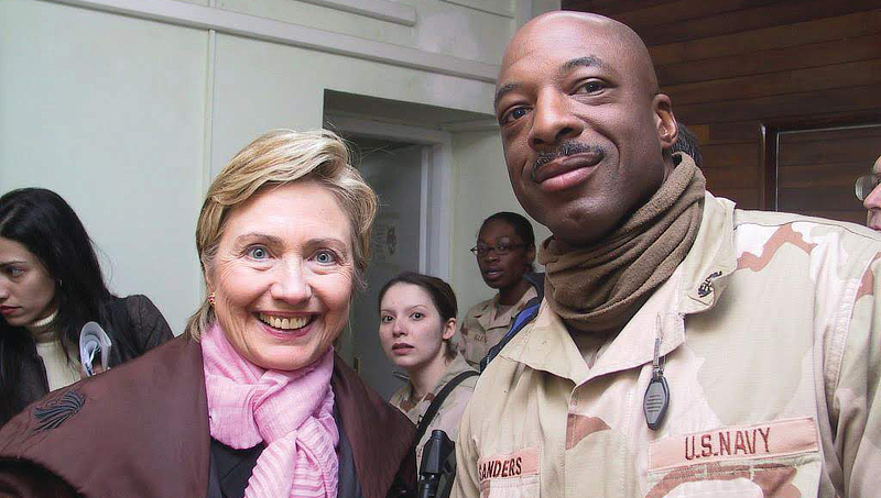 Dr. Robert Sanders and former U.S. Secretary of State Hillary Clinton.