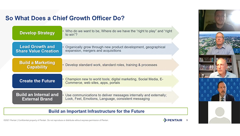 Prior to joining Pentair in 2017, Jacko served as vice president and chief marketing officer of Kennametal, a tooling and industrial materials supplier. He concluded his virtual visit discussing what he has learned about leadership during his distinguished career, which has brought him across the country.
