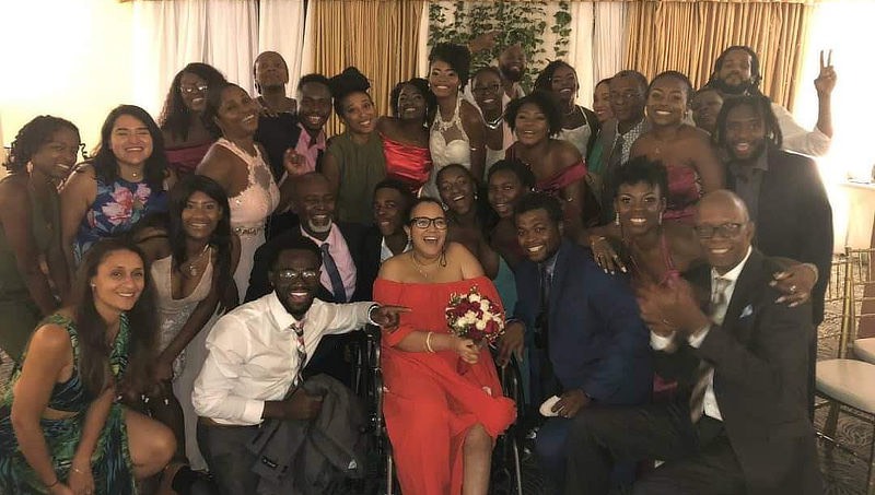 Zanaiya Léon at her cousin's wedding in Haiti with nearly all of her extended family.