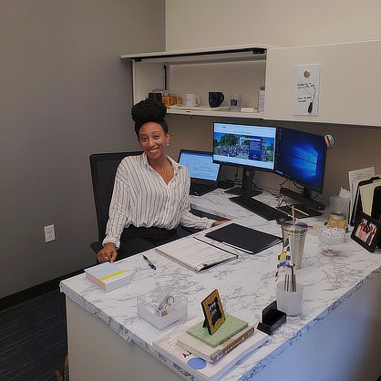 Zanaiya Léon in her office in the University’s Myatt Center during her first week as a full-time staff member.