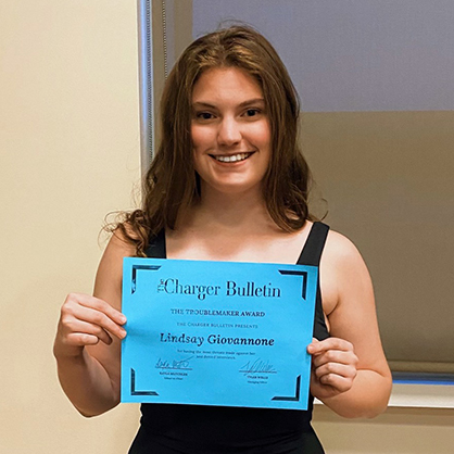 “The staff of The Charger Bulletin is getting just an ounce of the attention they deserve,” said Prof. Susan Campbell, the paper’s adviser. “They are tireless, committed, and great people with whom to work. I am so very proud of them.”