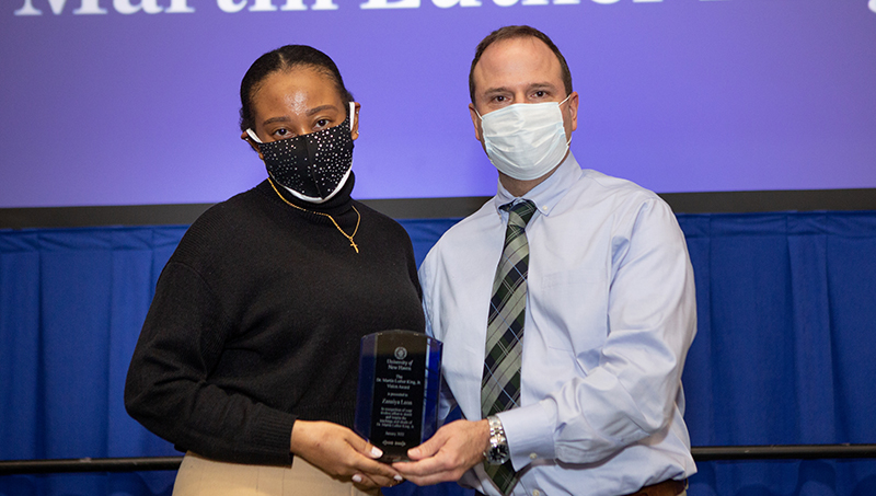The Martin Luther King, Jr. Vision Awards recognize members of the University community who demonstrate a commitment to Dr. King’s values and ideals. Presented to five members of the University community, the award recipients include two undergraduate students, a graduate student, a faculty member, and a staff member. Considered “unsung heroes” at the University, the recipients were nominated by their peers and colleagues.