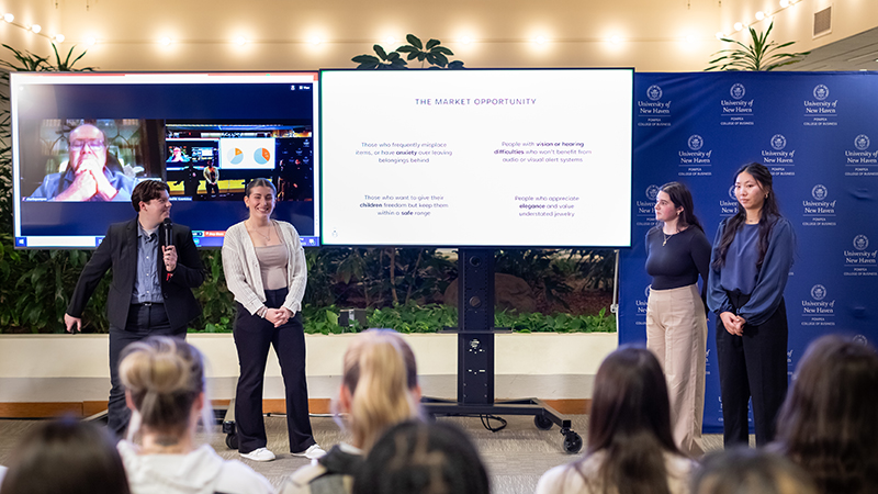 Leah Rubino ’27 says she enjoyed the experience. She and her teammates developed Brighter Horizons, a company focused on improving the quality of life for individuals with disabilities. They planned to begin by developing products to assist individuals who are visually impaired.