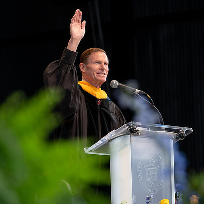 U.S. Senator Richard Blumenthal '00 Hon. echoed many of Dr. Kaplan's sentiments to the Class of 2023. He also addressed graduates at both the morning and afternoon ceremonies, emphasizing Dr. Kaplan's desire that graduates make a dedicated effort to improve the world they will inherit. Sen. Blumenthal also stressed the importance of their commitment to democracy – now more than ever.