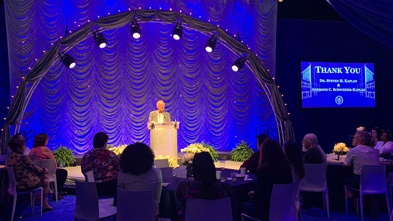 Dr. Kaplan will transition to president emeritus at the end of the fiscal year in June. The Kaplans’ legacy will continue to live on at the University. As part of the event, Brian Otis, EMBA, vice president for University Advancement, announced the commissioning of an oil painting of the Kaplans. It will, fittingly, be displayed in Anemone and Steven Kaplan Hall, the home of the University’s admissions office.