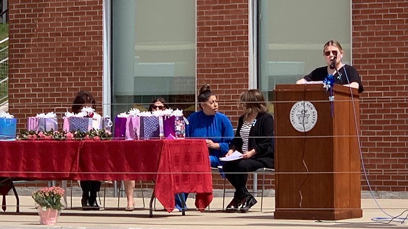 Recognizing those who have helped impacted children was an important focus of the event. Several professionals dedicated to protecting children received awards – including Harley DeMatties ’22, a victim advocate at the Rape Crisis Center of Milford.