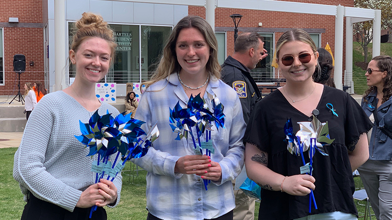 Garrett helped organize and took part in the Center’s 9th annual Pinwheels for Prevention, an event held recently in the University’s Bixler/Gerber Quad. Held every April as part of Child Abuse Prevention Awareness Month, the event was organized to encourage an important conversation about the importance of keeping kids safe.