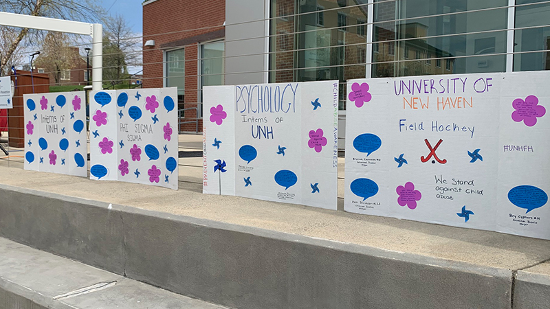 Posters with child abuse prevention and awareness messages from University organizations were featured at the event.