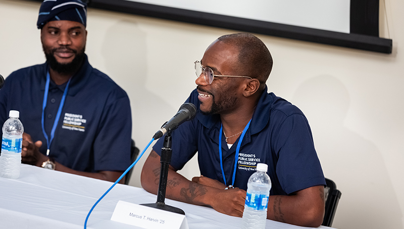 Harvin was among the half dozen students who took part in the President’s Public Service Fellowship over the summer. The Fellows shared their experiences in the program as part of a recent presentation on campus.