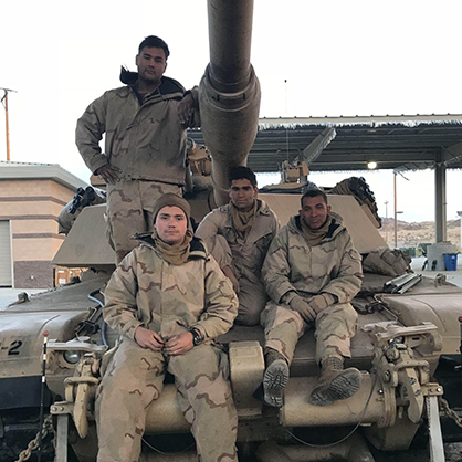 Andrew Ghataora '24 (front) with his fellow crewmembers after his first training exercise as a tank commander.