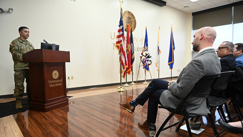 “I use my personal experiences and guide other student veterans through the transition from military status to academia,” he said. “Although the transition may look daunting, the University of New Haven’s Veteran Services program provides a safe space where veterans can be themselves with other like-minded student-vets."