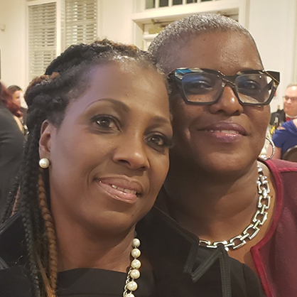 Barbara Lawrence, J.D., MPA (right) and her best friend and partner.