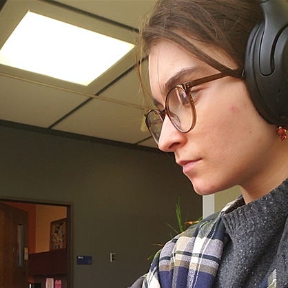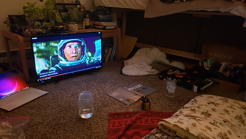 Beatrice Glaviano ’26 enjoys a relaxing movie night.