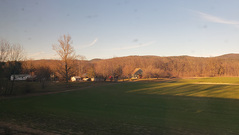By the time I arrived in Brattleboro, VT, I was fairly stuck to my seat. The scenery on the way up to New Hampshire was absolutely gorgeous: rolling, golden fields, farms filled with well-groomed horses, swishing their tails as they grazed. Caitlyn had gotten off in Hartford to catch a flight, leaving me with my laptop, a book that I didn’t touch, and homework that I was procrastinating on doing.