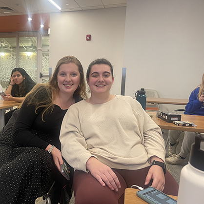 Allison Mahr ’24 (left) and Sydney Altieri ’25 in their Model United Nations class.