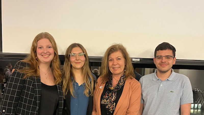 Allison Mahr ’24 (left) with her fellow Chargers at a conference at UMass Amherst.