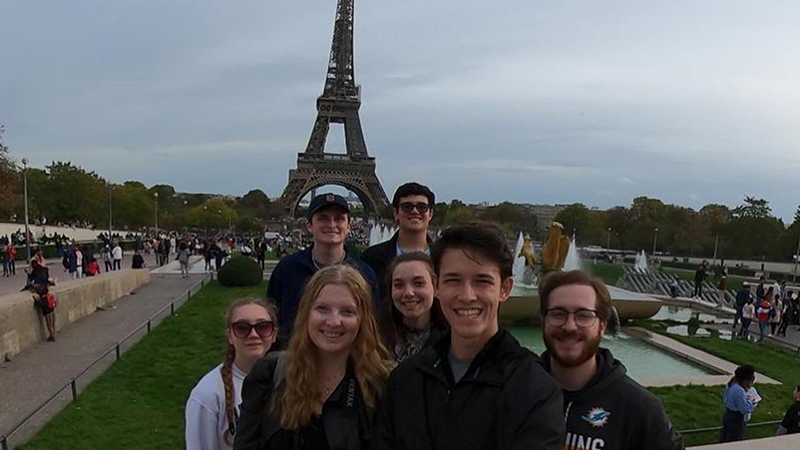 Allison Mahr ’24 (front, left) visited Paris while studying abroad in Italy.