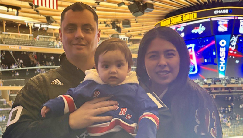 Diane Polo and her family at a Rangers vs. Capitals game at Madison Square Garden.