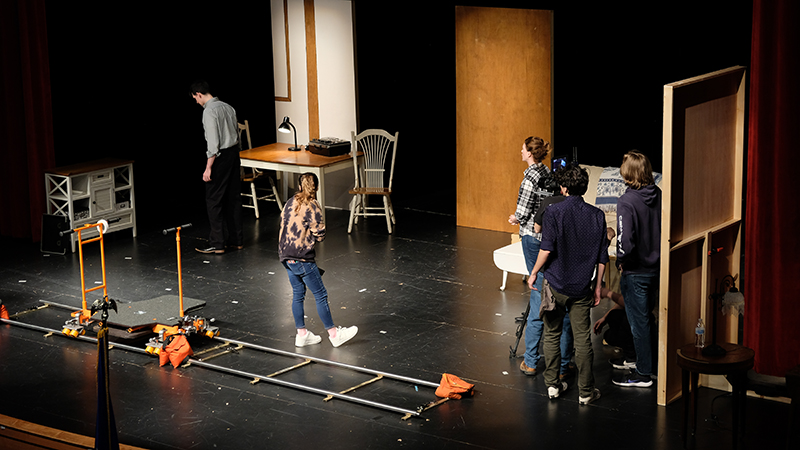 Gullotta, the director, wrote the script about a playwright facing despair and uncertainty as his working life and real life begin to merge. He fine-tuned the script with his writing team. They launched into preproduction and later began filming, all part of a semester-long project in Paul Falcone’s Film Production II course.