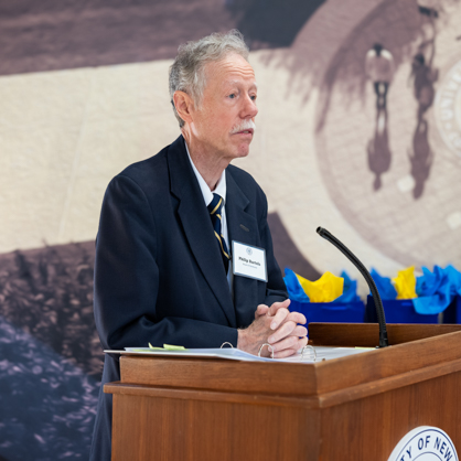 Phil Bartels ‘11 Hon. speaking at a luncheon to honor the 2024 Hatfield Scholars