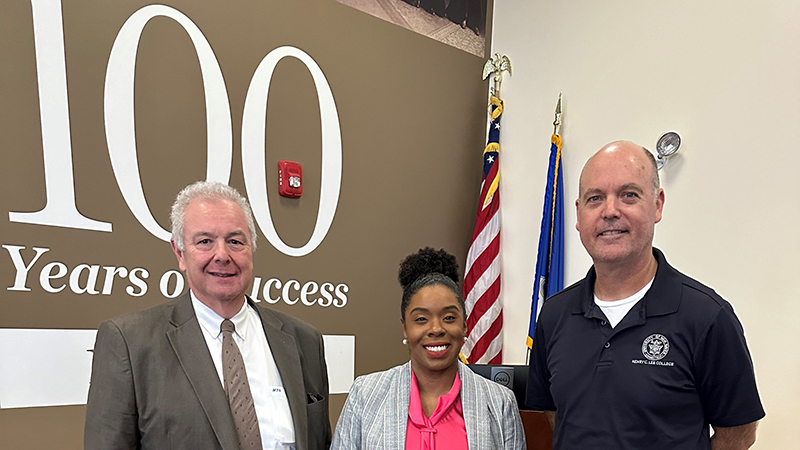 Sharonda Carlos ’19 MPA with Dr. Mario Gaboury (left) and Dr. David Schroeder.