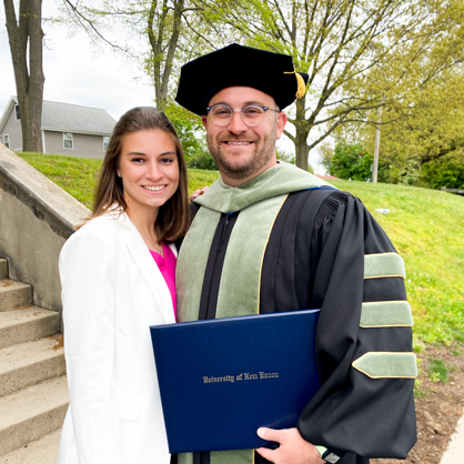 Aaron S. Marks, DHSc, one of the newest graduates of the University’s Doctor of Health Sciences Program, loves being part of a family of educators. His father Brian A. Marks J.D., Ph.D., is a senior lecturer in the University’s Pompea College of Business, his mother was a longtime nursery-school teacher, his sister has a Ph.D. in psychology and works in a teaching hospital, and Aaron’s wife Nicole is teacher as well.