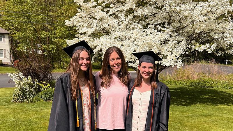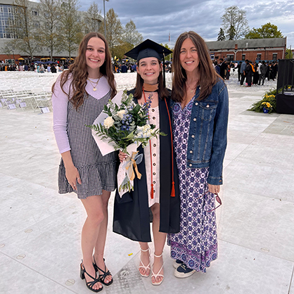 Paige Resnick ’24 (left), Haleigh Resnick ’24 MBA, and Lynne Hennessey Resnick ’94, ’96 M.S. at Haleigh’s graduation.