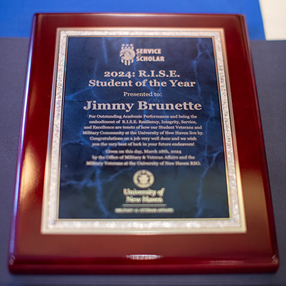 Brunette was recently awarded the 2024 R.I.S.E. Student of the Year Award as part of the University’s Salute to Service Awards Ceremony in recognition of his Resiliency, Integrity, Service, and Excellence.