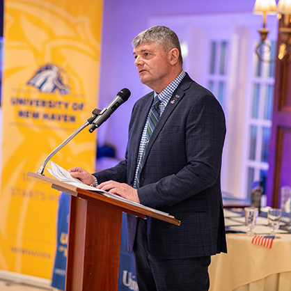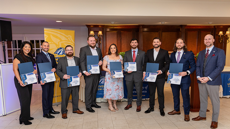 Joseph Danao II ’04 M.S., deputy commissioner of the Connecticut Department of Veterans Affairs and who was last year’s guest speaker, was also recognized at the ceremony. A graduate of the University’s master’s degree program in fire science and a retired Lieutenant Colonel who served in the Connecticut Army National Guard for more than three decades, he received the Lifetime Achievement Award. He has continued to be an active member of the Charger community, previously serving as president of the University’s Alumni Association.