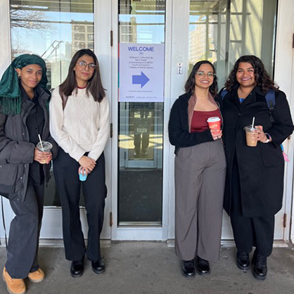 Ja’nya Hill, Moushume Chowdhury, Gauri Birmole, and Ria Maindan moments before presenting their research findings.