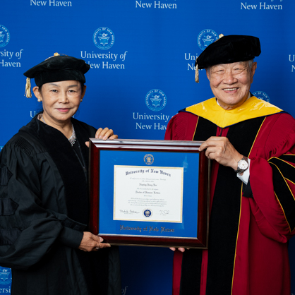 “Passionately devoted to cultural exchange and educational advocacy, you have impacted the futures of countless students as an educator,” the citation read. “Most admirable has been your work as an ambassador for the University of New Haven in Taiwan and China and leading fundraising efforts to support students.”