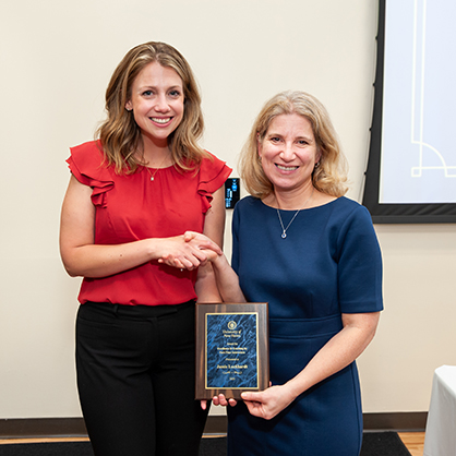 Jamie Luckhardt, MPH, CHES, a practitioner in residence in the Department of Population Health and Leadership, School of Health Sciences, earned the Excellence in Teaching for Part-Time Faculty award.
