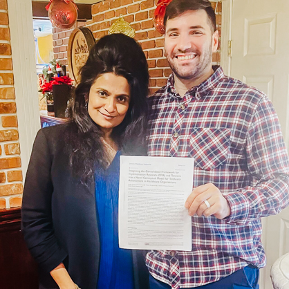 Sumbul Yousafi '24 DHSc, is a cancer clinical research coordinator for Stony Brook Medicine, and Jordan Schweidenback '20 MHA, '24 DHSc is director of strategic sourcing for the Blackmaple Group and a lecturer in the University of New Haven's Master of Healthcare Administration program.