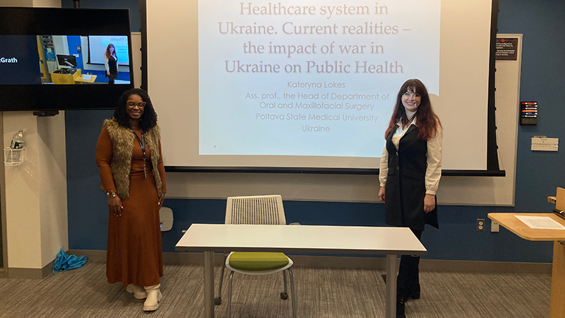 Visiting scholar Kateryna Lokes, Ph.D. With students from School of Public Health presentation