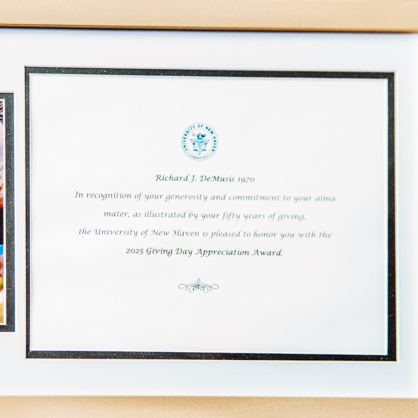 DeMusis has made a gift to the University every year for the last 30 consecutive years — and for 49 years in total. During this year’s Giving Day celebration, that extraordinary commitment was formally recognized with a special tribute honoring his lifelong dedication to supporting the University.