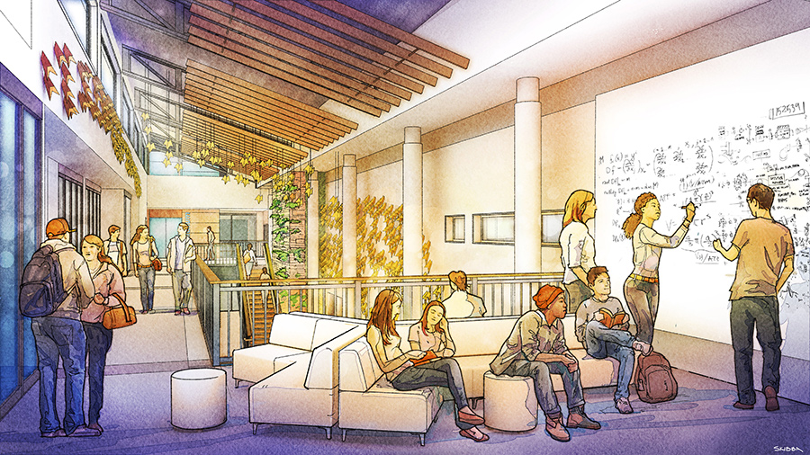 communications studios, advanced "smart" classrooms, an atrium/café, and space for